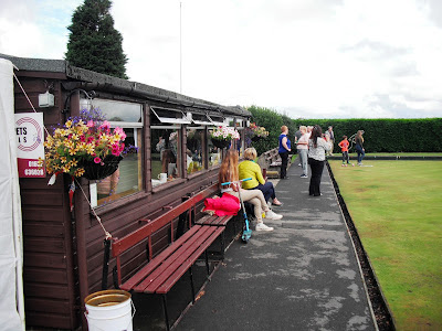 Home made cakes for sale. I treated myself to a slice of coffee and walnut cake, baked by Bob, it was lovely.People are having a go at bowls. I chucked a few balls last year but wasn't very good so I'll give it a miss this year. Mind you, if you asked me if I fancied a game of ten pin bowling I would jump at the chance. The wooden clubhouse will be demolished in the near future, they applied for a grant to build a new one, and got it.