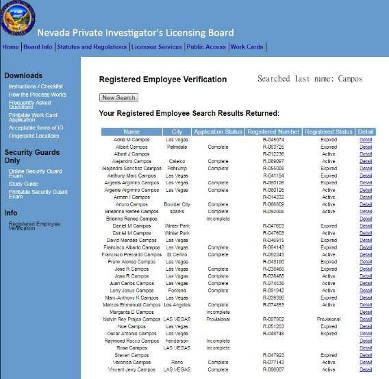 The infamous security guard at the Mandalay Bay Hotel, who was allegedly shot stopping the massacre in Las Vegas over a week ago is not listed or registered as such. Jesus Campos, who the narrative is constantly changing around, is still a source of mystery.