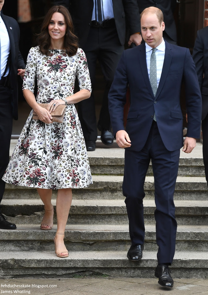 Kate selected a bespoke pale blue Emilia Wickstead coatdress for the day. Below, Kate and Prince Guillaume.